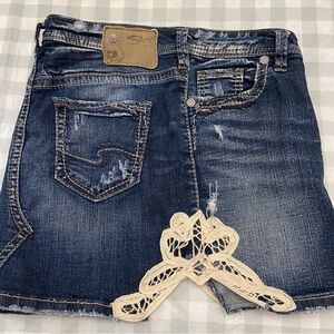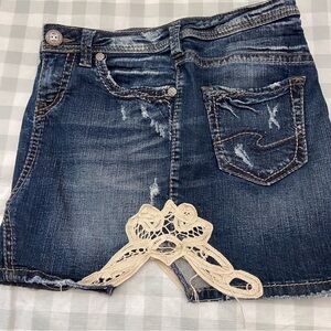 SILVER Francy jean mini skirt lace insert super strech denim mid rise western 25