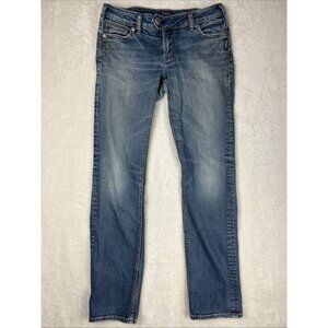 SILVER JEANS Tuesday Low Straight Blue Denim Jeans Women's Size 30 32W Stretch