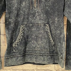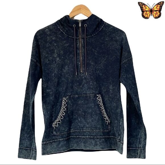 SILVER Jeans Long Sleeve Quarter Zip Distressed Denim Pullover Size Medium