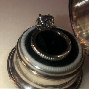 Silver Metal w Cubic Zirconia Ring No Stamp Filigree Setting Studded Band Sz 6