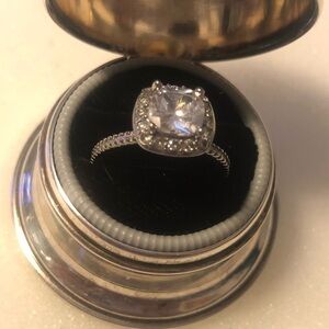 Cute costume ring, metal coloured silver (cannot find any stamps) reflective cubic zirconia stones