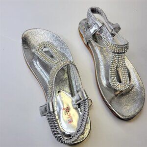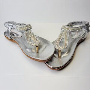 SILVER Sandals Size 7 Rhinestones Adjustable Strap Toe Post Beach Womens Sandals