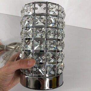 SILVER & Sparkly Bling Crystals Small Acccent Table Lamp - 4.5 W x 7.5 H