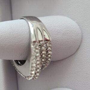 SILVER colored statement chunky stacking ring with Cubic zirconia stones Size 8