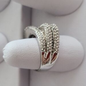 CZ stones silver colored ring...stackable look when on ...sparkly stones