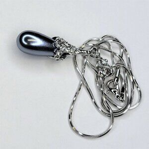 SILVERY Grey Pearl Teardrop Pendant Necklace and Chain