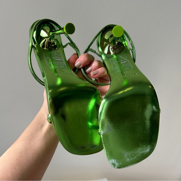 SIMKHAI Green Chrome slip-on strappy heels / mules 7