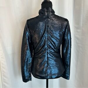 SIMONS Icone Matte blue Sequin high neck long sleeve top Sz S