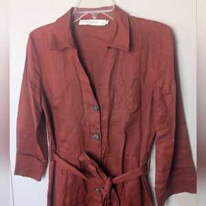 SIMON'S La Contemporaine 100% Linen Size S Red Rust/Orange Color 1/2 Sleeve