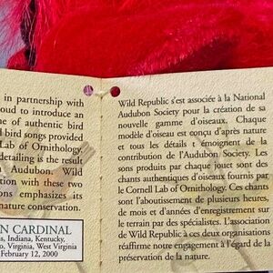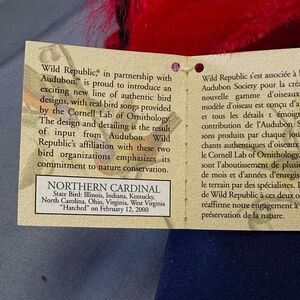 SINGING BIRD, PLAYS REAL BIRD CALLS, RED CARDINAL, 6 L x 4 ½ W x 4 ¾ H INCH PLUSH, SPECIAL EDITION COLLECTIBLE, AUDUBON NATIONAL GEOGRAPHIC, NEW WITH TAGS, NEVER USED, NO DAMAGE.