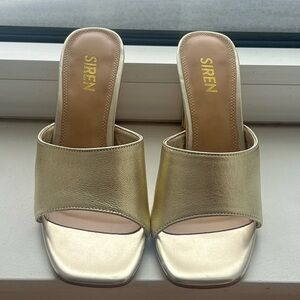 SIREN SHOES KALLIE SHAVED BLOCK HEEL MULE IN SOFT GOLD LEATHER