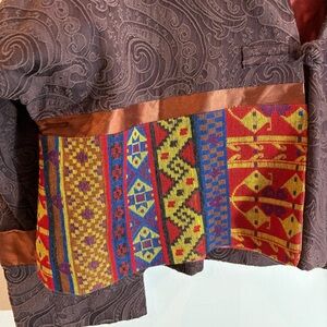 SISSY ME Sz M Blazer Cropped Oversized Mixed Media Lined Boxy Brocade Jacket