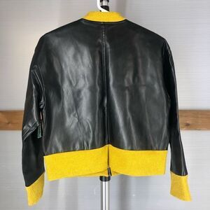 SISTER JANE NWT Black Faux Leather Yellow Trim Bomber Jacket Sz S
