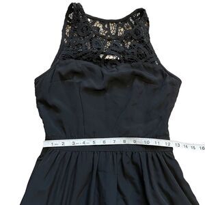 SISTERS Black Lace Top Sheer Back Mid Length Sleeveless Dress 34