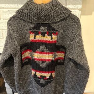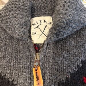 Canadian made by Sitka brand of Victoria. Thick wool cardigan, wooden zip pull with iconic Sitka fir logo.