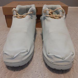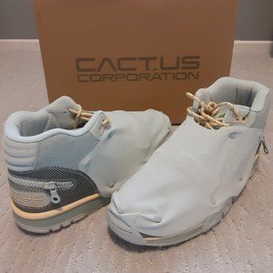 Pulling inspiration from backpacking gear, the Nike Air Trainer 1 SP Travis Scott Grey Haze features a light grey canvas upper with darker grey mesh overlays and single stitch Swoosh logos. Canvas shrouds on the upper give wearers options for styling. At the heel and inside of the tongue, concealed zipper pockets provide extra storage. From there, "Cactus Corporation" insignias at the heel and forefoot velcro strap add a custom feel.