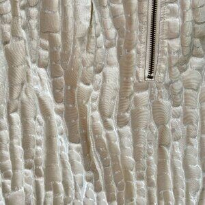 This stunning cream coloured mini dress is highly textured and form fitting.