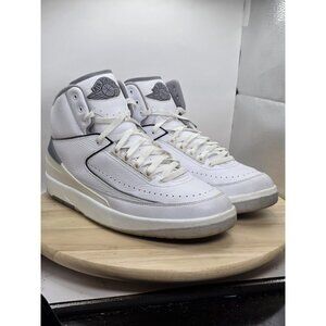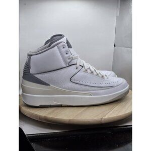 The product is a pair of Air Jordan 2 Retro White Cement sneakers in size 13. These sneakers feature a classic lace-up closure, rubber outsole, and comfort features. The style is a retro Jordan 2 silhouette in white color with cement grey accents. They are perfect for casual occasions and can be worn in the summer and spring seasons. These athletic shoes are part of the Air Jordan product line and are manufactured by Jordan, known for their quality and style.
