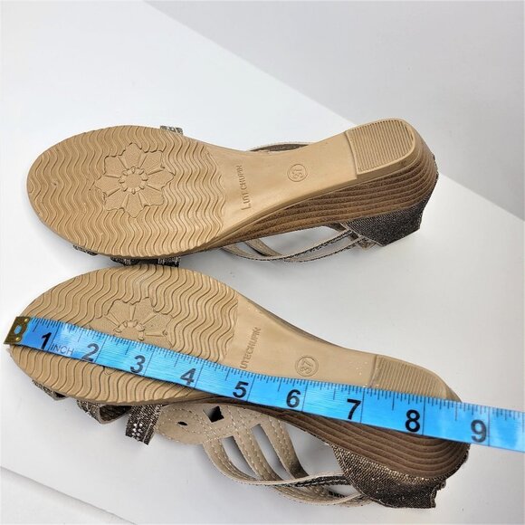 Size 6 Women Ladies Gold Tone sparkling Wedge Sandals