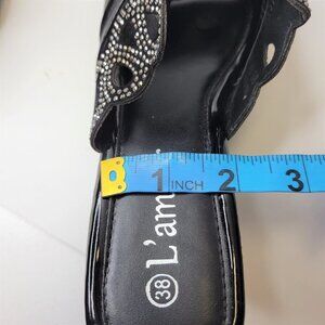 SIZE 7 Black Rhinestone Wedge Heels Shoes Platform Slide Sandals Slippers NEW