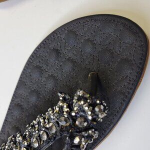 SIZE 8 Black Glitter Embellished Sandals Cushioned Flats Slippers (Size 39)