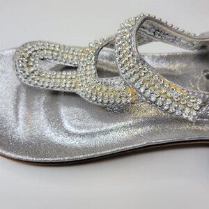 SIZE 9 Silver Sparkly Womens Sandals Adjustable Strap Toe Post Holiday Sandals