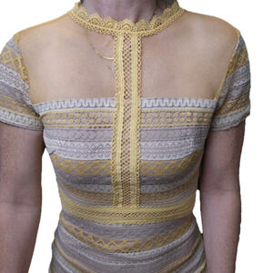 SIZE XS Mini dress high neckline lace dress short sleeve FRANCESCA'S NWT