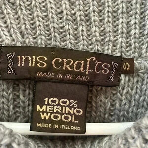 [S]Inis Crafts Merino Wool Jumper Grey Cable Knitted Roll Neck Sweater