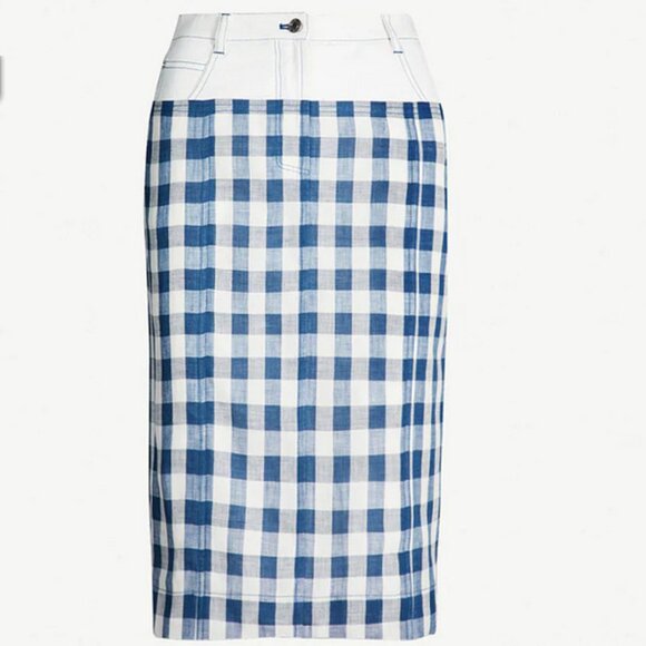 This adorable knee length skirt is created in a denim style but with elevated fabrics. Made of cool linen and a cotton blend, it is fully lined in white poly. It offers the traditional 5 pockets, a zip fly front, a jean style metal button and an walking pleat at the back for ease of movement. This skirt looks fantastic with a white sneaker, flip flops or a wedge to dress it up but would also transition easily with a boot for the fall. The perfect piece to wear daily at home or pack for that trip. The measurements are taken carefully as there is no stretch but cannot be guaranteed. Waist 24 inches (62 cm), hips 34 inches (86 cm), length 25 inches (63.5 cm).