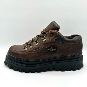 SKECHERS VINTAGE LEATHER BOOT LACE UP BROWN BOOT CHUNKY SOLE 90s MEN SIZE 9