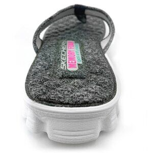 From poolside to the sidewalk, experience all-day comfort wearing Skechers EZ Flex Golden Coast Sandal. These thong flip flops feature a memory foam gel-infused upper, contoured footbed with textile lining, flexible traction outsole and a toe-post closure for easy on/off. Size: Women’s 5. Colour: Gray. EXCELLENT pre-owned condition.
