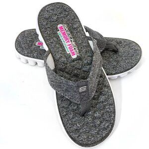 SKECHERS Women’s EZ Flex Golden Coast Gray Flip Flop Sandal Size 5