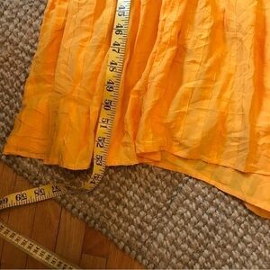 Brand new with tags. Saffron coloured maxi dress. Gorgeous fabric, ruffled hem, adjustable straps, elasticized back to ensure a perfect fit. Lining is knee length. Excellent condition.