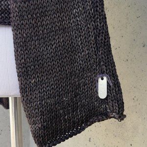 SKIF / SKIFO knit cardigan or shrug, made in USA. There's no fabric content tag, but it feels like a natural/synthetic blend. The sweater is quite 'solid,' in that it appears unlikely to pill. SKIF appears to have printed the yarn a lighter shade of brown in some places. You can see this along the bottom in some of the pics.