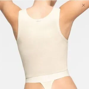 SKIMS cotton rib tank in off-white (supplier colour “bone”) , size S. Scoop neckline, slightly cropped fit (hits at natural waist).