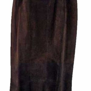 SKIRT SUEDE MISSES 14, DARK BROWN, LONG A-LINE, SCALLOPED HEM, BACK ZIPPER, FULLY LINED, FLAT FRONT & BACK, BY JESSICA, HIGH QUALITY SUEDE, TAGS ON, NEVER WORN