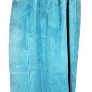 SKIRT, SUEDE, MISSES MEDIUM, TURQUOISE, LONG LENGTH, FULL DOMED FRONT, FULLY LINED, HIDDEN METAL SNAPS, TOP QUALITY SUEDE, IN BAG, NEVER WORN, NO DAMAGE