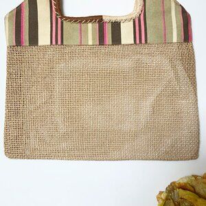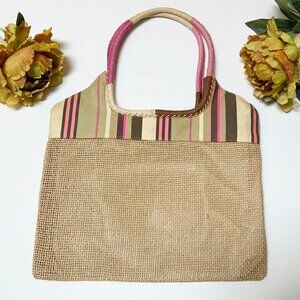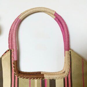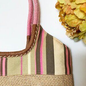 Colorful Beige Brown and Pink Woven Straw Cord Top Handles