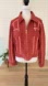 Skott's Suede Original Washable Genuine Suede lined pink jacket. Moto style with leather striped trim. YKK Zippers. Branded snaps on the cuff and small metal branded tag on front. Open front pockets and two zippered chest pockets. Designed in Canada, made in China. Lining is 100% polyester. Washed delicate cycle, brief extra low heat tumble dry and finish drying hanging up.