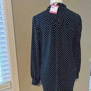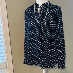 [S]Kate Spade Dark Navy Blue Polka Dot LS Blouse