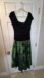 Elegant midi dress with a black bodice and green floral skirt. Ideal for special occasions.