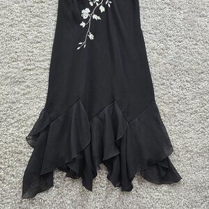 SL Fashions Womens 6 Embroidered Midi Dress Black Ruffle Hem Elegant Whimsical