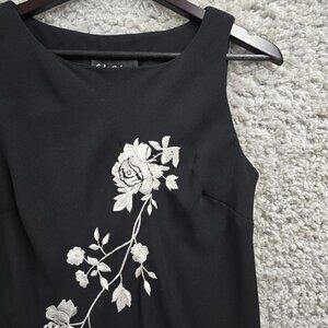 SL Fashions Womens Size 6 Embroidered Midi Dress Black Ruffle Hem Elegant Whimsical