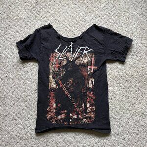 Slayer 2018 North American Concert Tour shirt. Neckline has been cut down, estimated size is womens large, mens small
