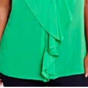 SLEEVELESS BLOUSE, MANDARIN COLLAR, KELLY GREEN, SIZE 24, POLYESTER, RUFFLE BUTTON FRONT, ADDITION ELLE, TAG ON, NEVER WORN
