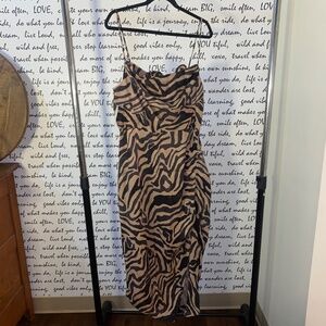 SLEEVELESS DRAPED-BACK ASYMMETRICAL SLIP MIDI DRESS
