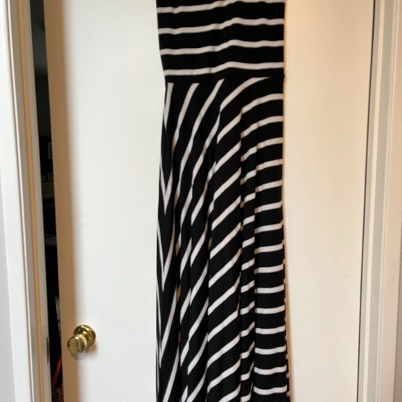 Lovely black and white stripe in a sleeveless sundress.