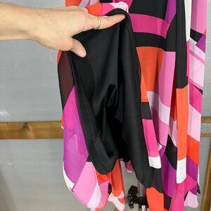 SLNY Black Scoop Neck Cap Sleeve Chiffon Multicolor Asymmetrical Maxi Dress Sz8