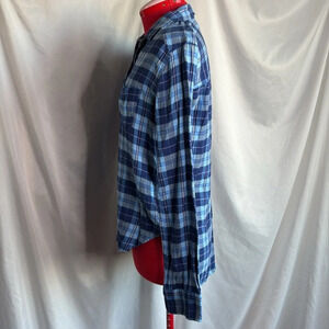 SM141 Hollister blue plaid button down long sleeve shirt