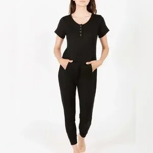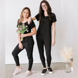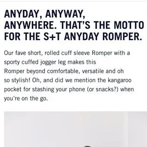 OUR FAVE SHORT, ROLLED CUFF SLEEVE ROMPER WITH A SPORTY CUFFED JOGGER LEG MAKES THIS ROMPER BEYOND COMFORTABLE, VERSATILE AND OH SO STYLISH! OH, AND DID WE MENTION THE KANGAROO POCKET FOR STASHING YOUR PHONE (OR SNACKS?) WHEN YOUR ON THE GO.